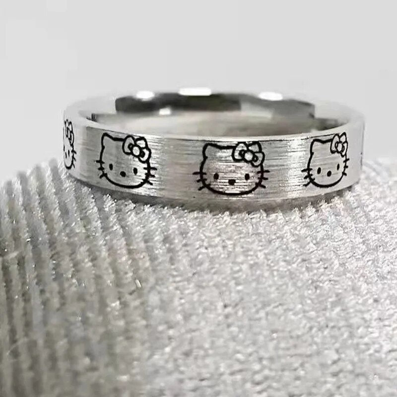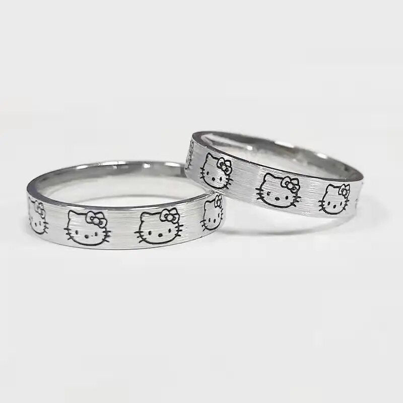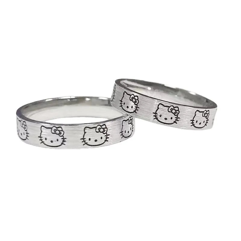 Sanrio Hello Kitty Rings for Girl Y2K Hello Kitty Accessories Finger Ring Female Bff Ring Cartoon Ring Kawaii Rings Lady Silvery